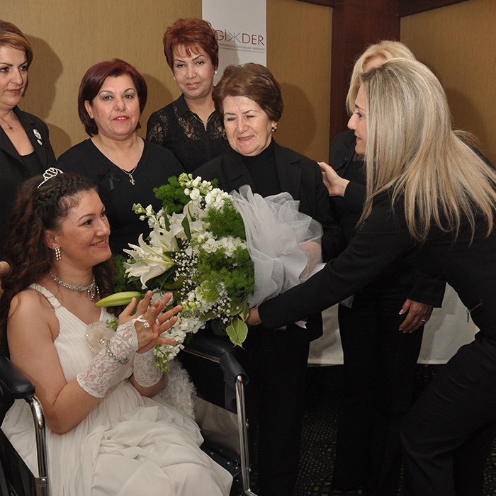 “Kendi çocuklarımdan ayırmadığım ve büyütürken tüm aile ve çocuklarımla Müge’yi engelsiz bir birey gibi yetiştirmek için uğraştık. İşitme ve konuşma engeline rağmen eğitimlerle iletişim kurmasını sağladık. Yapılan tedavi ve rehabilitasyonla şu an az da olsa ayağa kalkmasını sağladık. Kendi hayatından fedakarlık ederek ailesiyle yıllardır Müge’yi hayata kazandırmayı amaç edindik ve bundan da büyük mutluluk duyduk. Müge artık Engelliler Sanat Evi’nde aldığı kurslarla tekerlekli sandalye ile dans etmesini öğrendi ve gösterilerde yer alıyor ve bu da yaşama sevincini artırıyor. Bu etkinlik bizi çok duygulandırdı. Bizleri unutmadıkları için ve duyarlılıkları için tüm AGİDER üyelerine ve engellilere gönüllü eğitimler sağlayan Hülya Bostanoğlu’na tüm engelliler adına teşekkür ederim.”